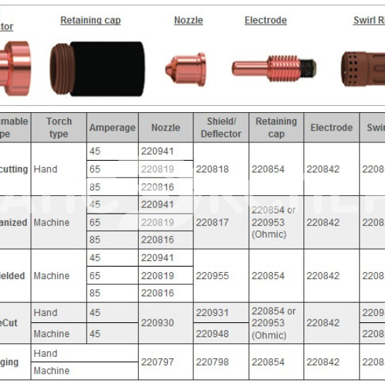 Применяется в промышленных установках плазменной резки, металлообрабатывающих цехах и сервисных центрах. Аналоги: оригинальные завихрители Hypertherm, но модель 220994 предлагает оптимальное соотношение цены и производительности. Преимущества: точность изготовления, устойчивость к термическим нагрузкам, доступность (производство КНР, наличие на складе). Артикул: 220994.