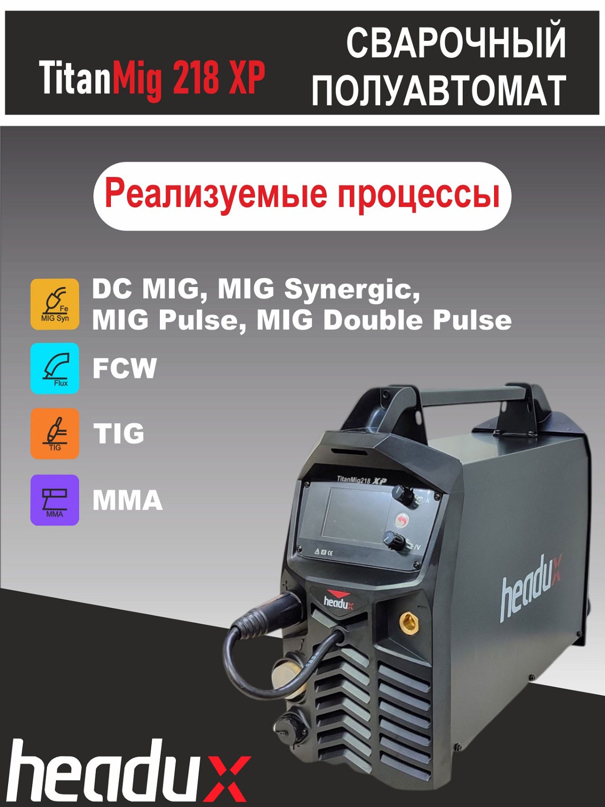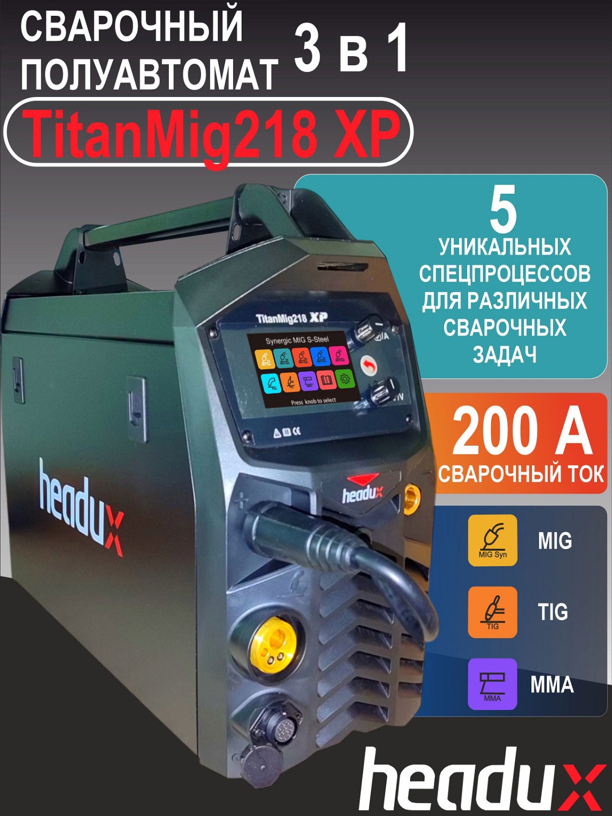 • Три режима сварки в одном устройстве: MIG, MAG и MMA, 5 уникальных сварочных процессов!